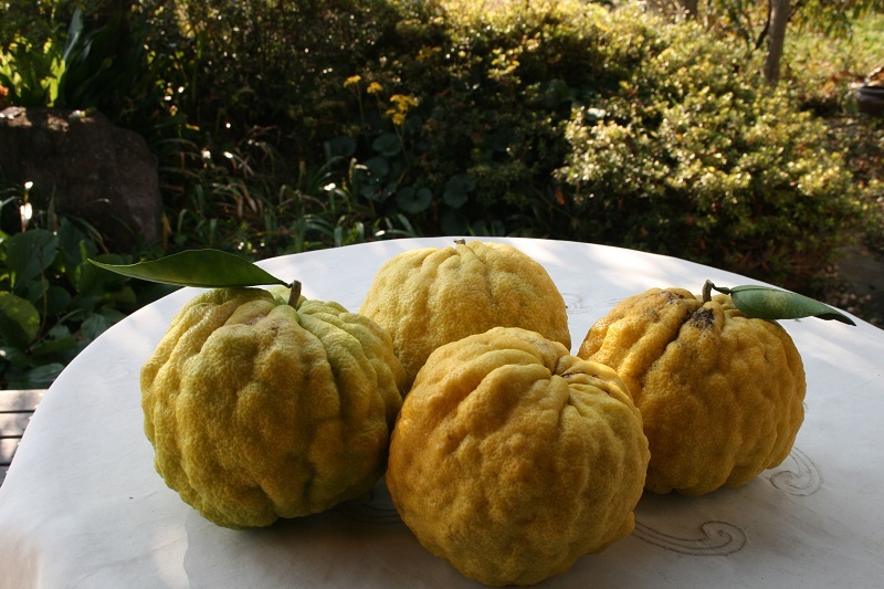 友人宅に実る獅子柚子です。 鬼柚子ともいうそうです。 一っ個の重さが、600gから800g未満、いかにして喰らおうか?