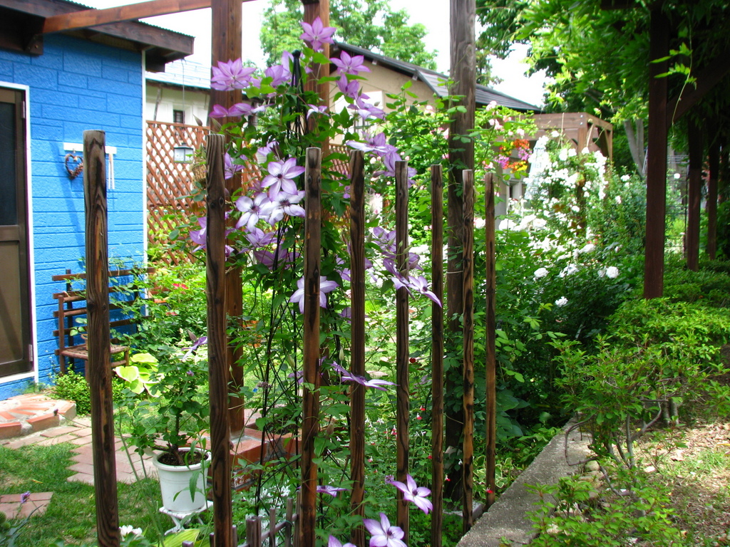 背景のブルーとクレマチスの紫がいいコンビネーションになっていてとっても美しいですね(*^^*)!