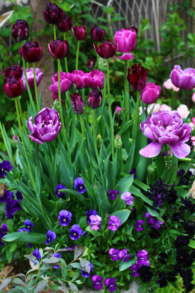 ひとつの鉢の中に沢山の球根とビオラ、パンジーを仕込んでみました。
