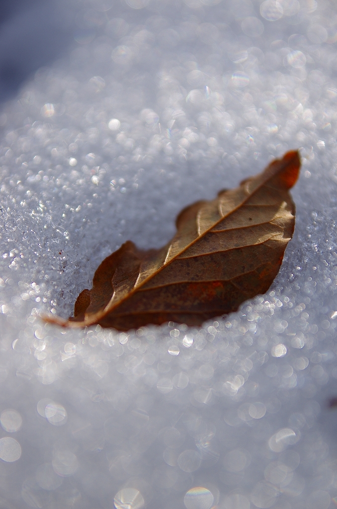 今回の登山中 雪のなかで 一番印象的な木の葉です。