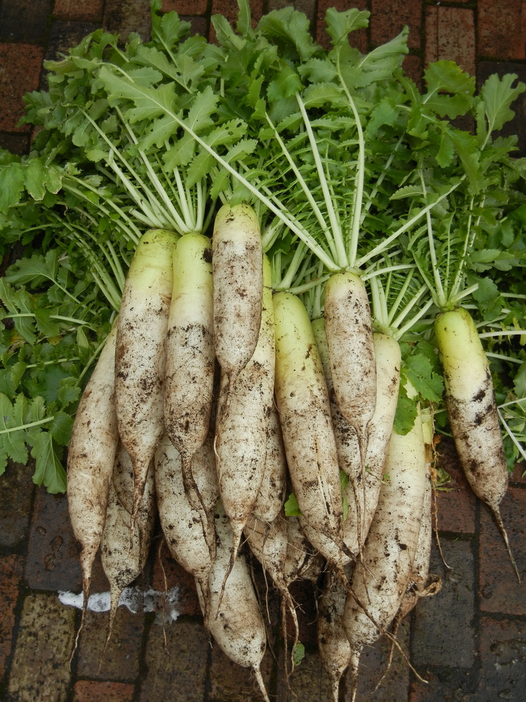 26本の大根を収穫!農家のお嫁さんになったみたい。立派な大根だったので、家の前で1本100円で売りました。。なんて冗談です。