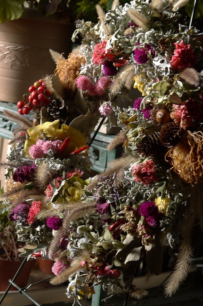 シックで豪華なリースですね~深い色合いが素敵です。