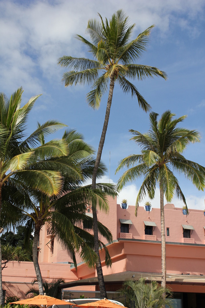 ロイヤルハワイアンホテルの前にそびえるヤシの景色。