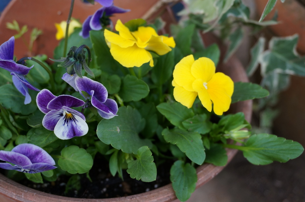 ビオラとアイビー、白妙菊、ニゲラの小さな苗も植えました。