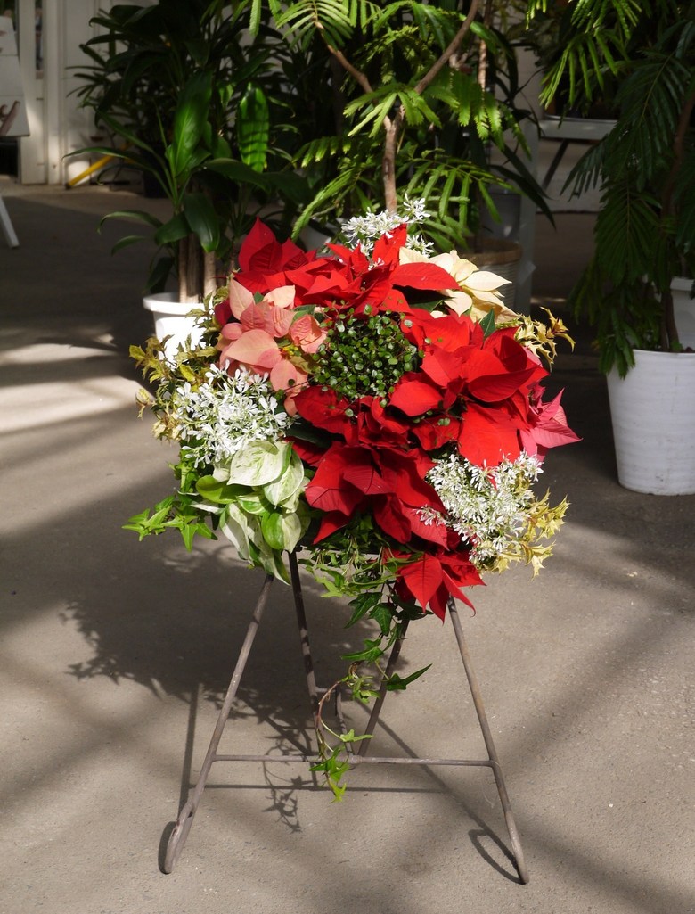 ポインセチアをハンギングにしてしまうなんて~。トロさんに不可能な素材はないですね。とってもステキです!