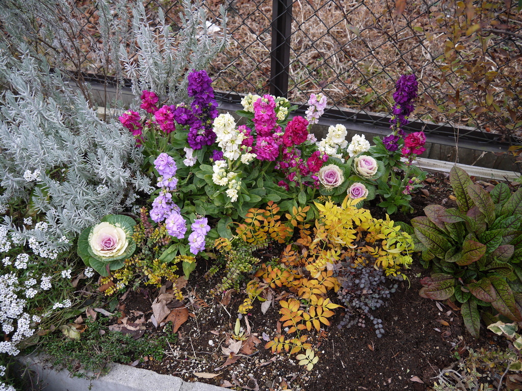 冬の花壇もけっこうカラフルで、良い感じになって来ました。