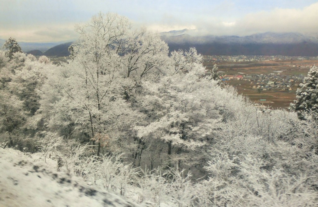 これは姨捨付近の線路際の霧氷。とってもきれいでした。