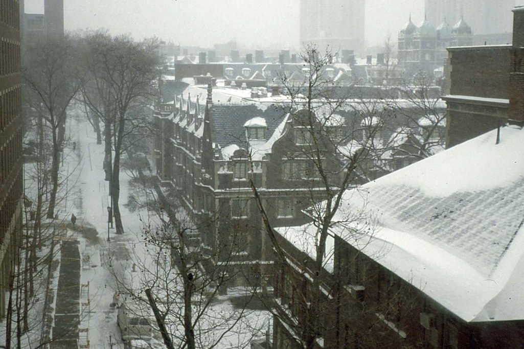 ある年の新年、雪が積もったキャンパス。アイビーリーグの古い建物は、18世紀当時の英国の建築様式そのものだったのだなと、いま思い返しています。