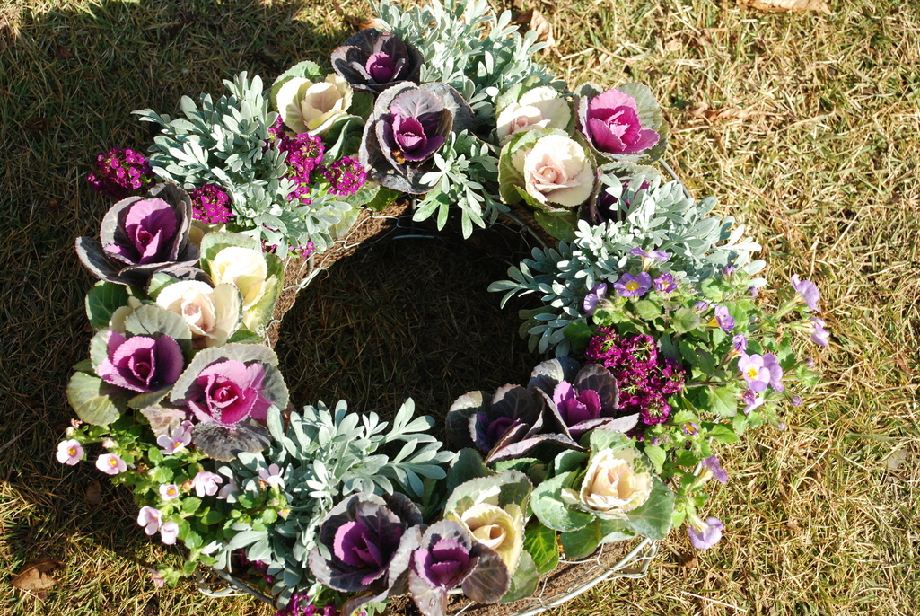 最近は寄せ植えやリースに使いやすいようないろんなサイズの葉ボタンが売っていて、楽しいです。