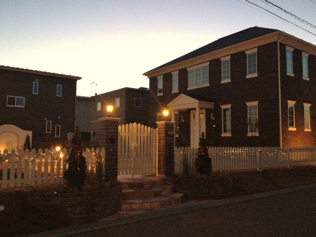 ガーデンの門柱の両脇に初イルミネーションをつけました。