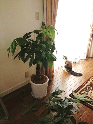 パキラ,猫,剪定,,