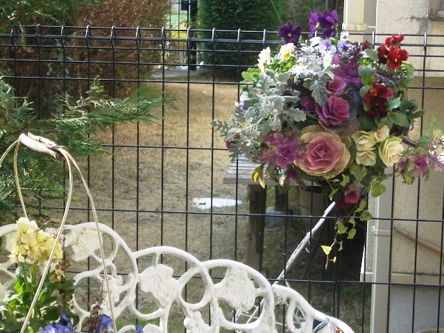 強風にあおられて、こわれてしまった、ハンギングバスケットを仕立てないしてみました。又長く楽しませてもらいたいです。