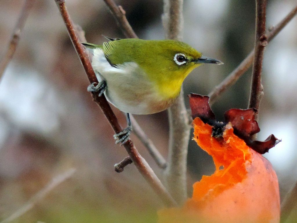 めじろ,鳥,2月,食事中,お隣