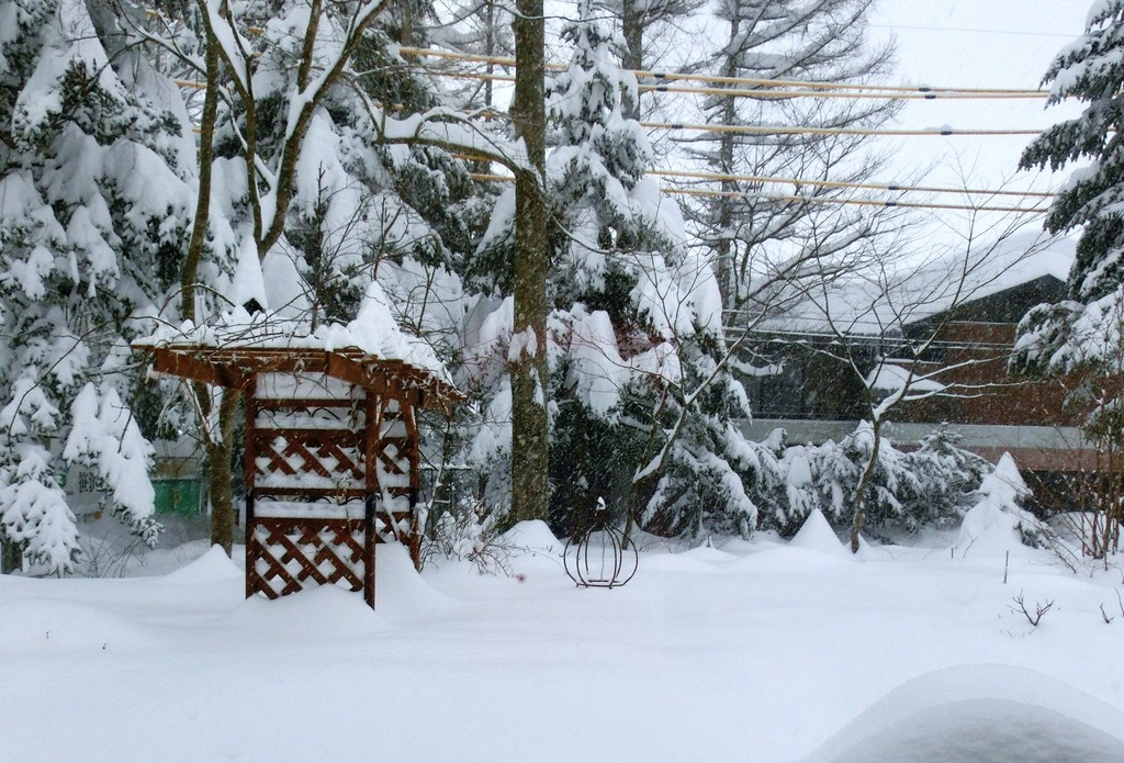 パーゴラやトレリスも1m以上埋もれており、いつもならデッキの雪を庭に捨てるのですがとてもこれ以上積み上げるわけにもゆきません。多分このまま4月ごろまで根雪になると思います。