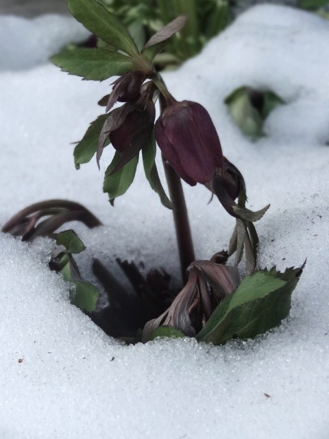 ホントですね~!雪の中から顔をだしてへレボは寒さに強いのかな(*^^*)?今年は大雪で大変そうですね。