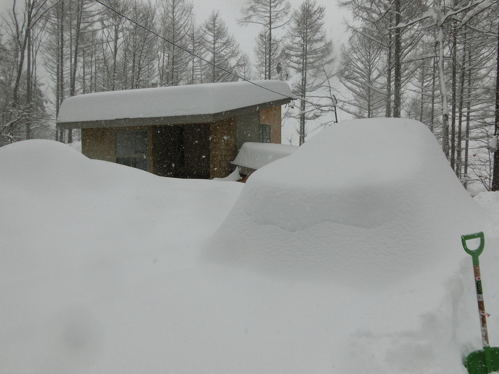 道路へ続く道は1mの雪に埋まり、高速も国道も通行止めで結局3日間閉じこもることに