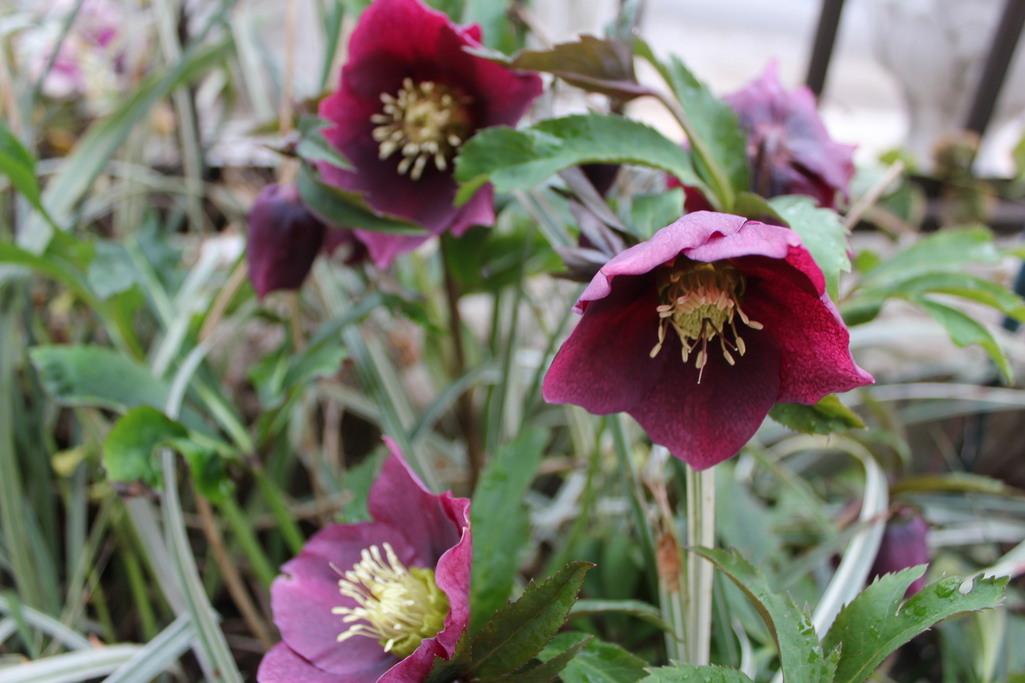 地植えのシックな赤系クリスマスローズ