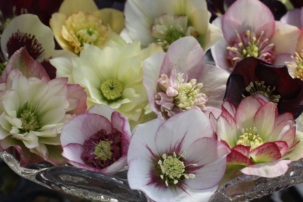 様々なクリスマスローズ。たくさん咲いて、とても美しいですね。