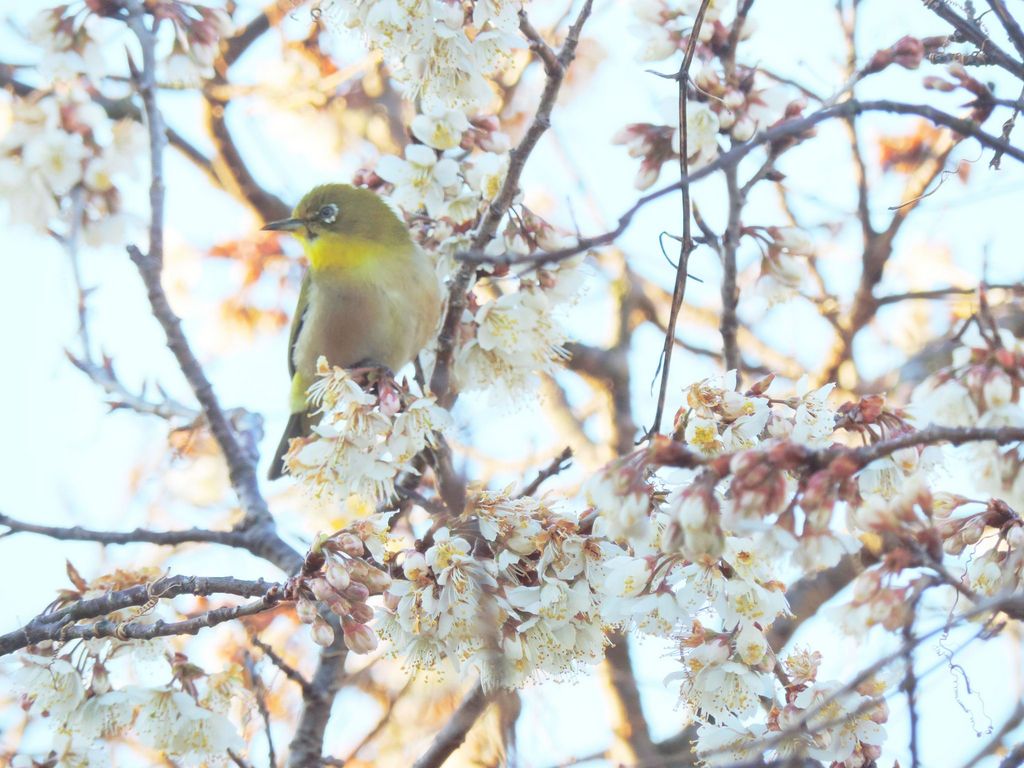 めじろ,花木,3月,ピンク,お隣