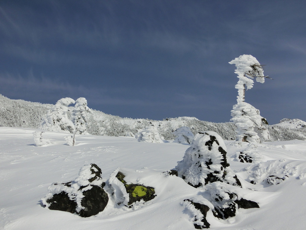 2014.3.9 マイナス15℃の冷気と強風が作り出したエビの尻尾と呼ばれる芸術作品 冬は雪に覆われた坪庭も夏場はコケモモと高山植物が一面に広がっているそうです
