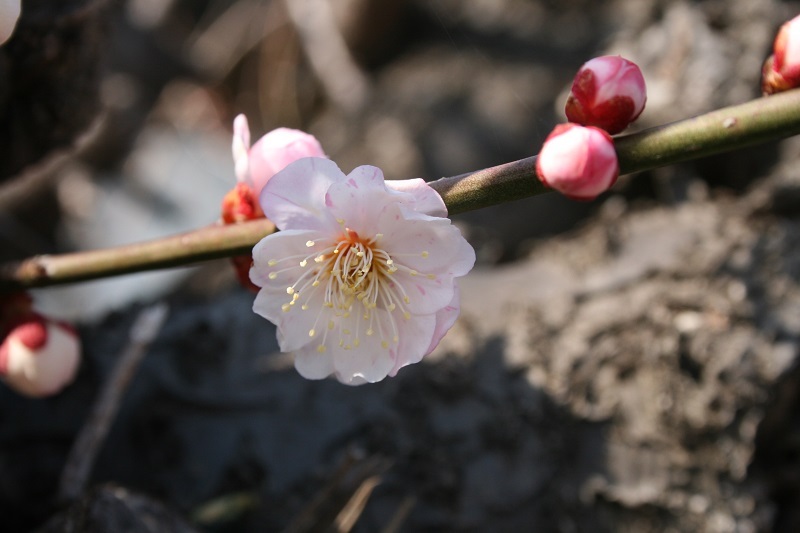 我が家の梅は、思いのままという種類です。 白、ピンク、濃いピンクと思いのままに咲き乱れます。 やっと、咲き始めました。