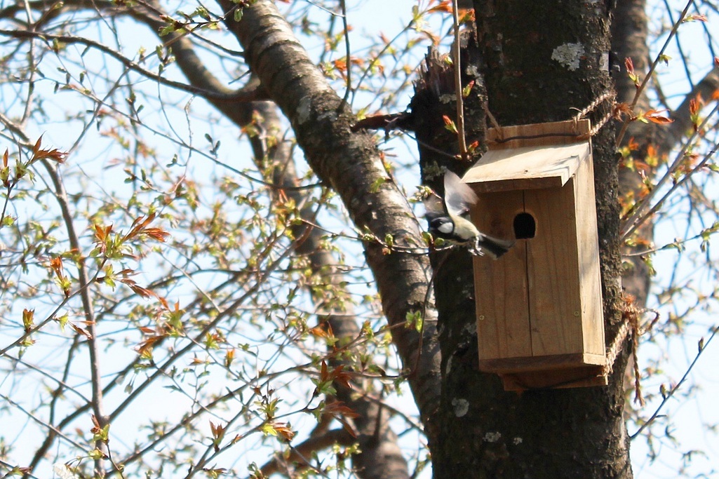 また飛び出していきました。ちょっと細めのネクタイが見えるのでこちらがメスのようです。