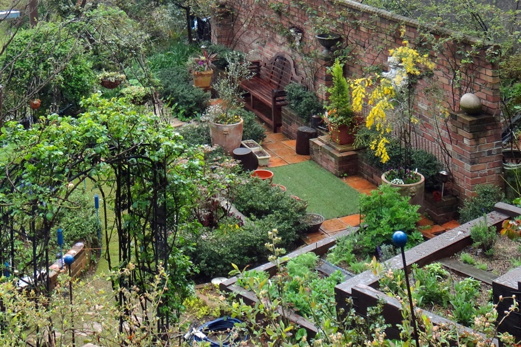 植物が一気に芽吹き、雨でぬれて鮮やかな緑の庭へ変貌する季節・・・ハーブ花壇の枕木の耐久性を維持するためにペンキを塗りました。