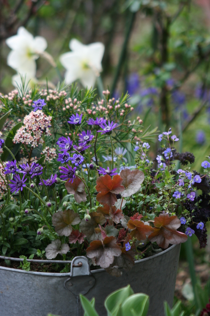 ブリキのバケツ、私も大好きです。かわいい寄せ植えですね。