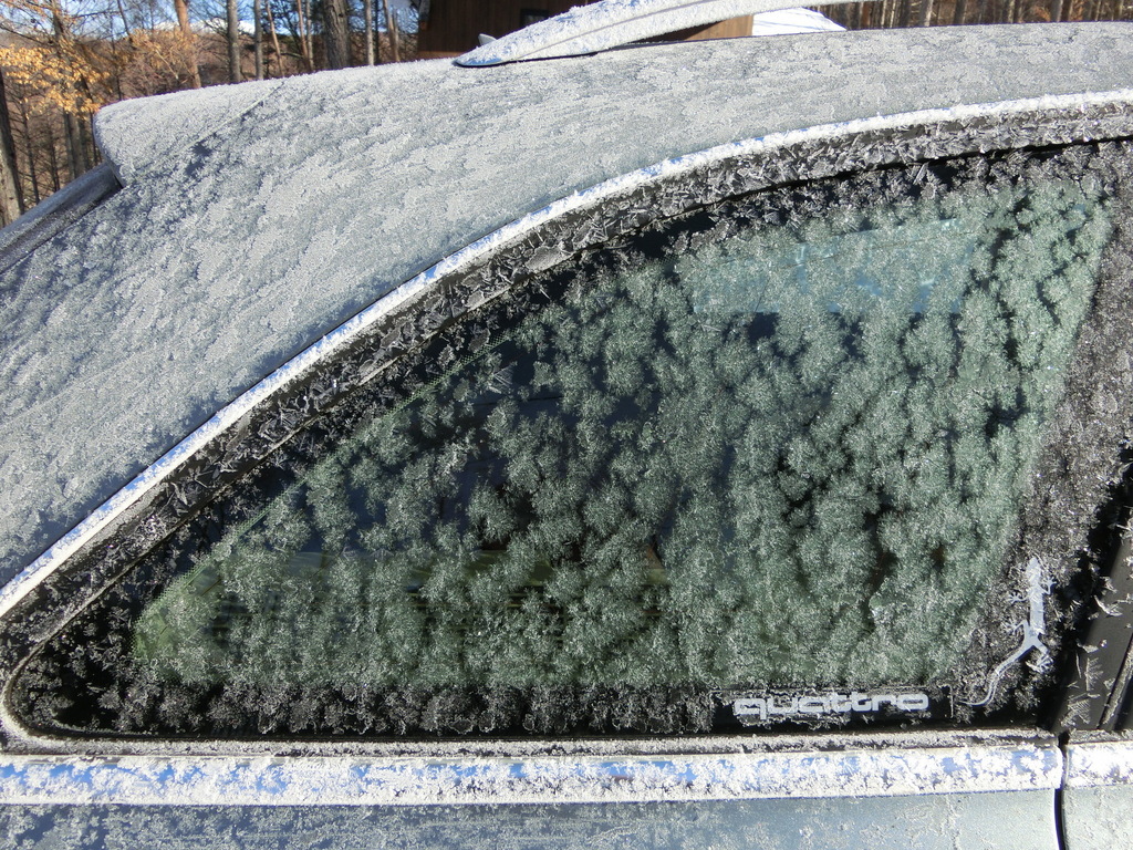 マイナス15℃になった2月のある日の朝 車に咲いていた霜の花です
