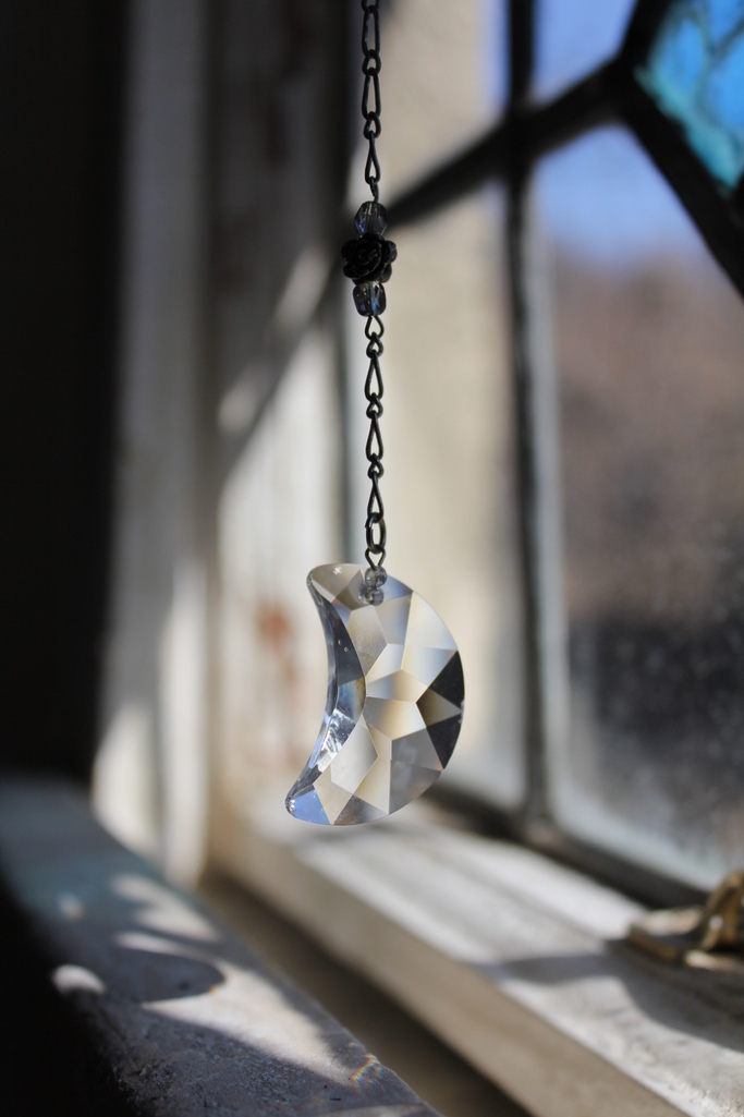 コテージの中にあるサンキャッチャーです。市販のクリスタルガラスにビーズ雑貨を組み合わせて作りました。
