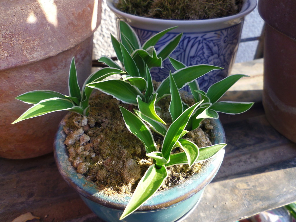 ミニ盆棚に次々春が来て、芽吹きが楽しいです。3種のギボシのうちの一つです。