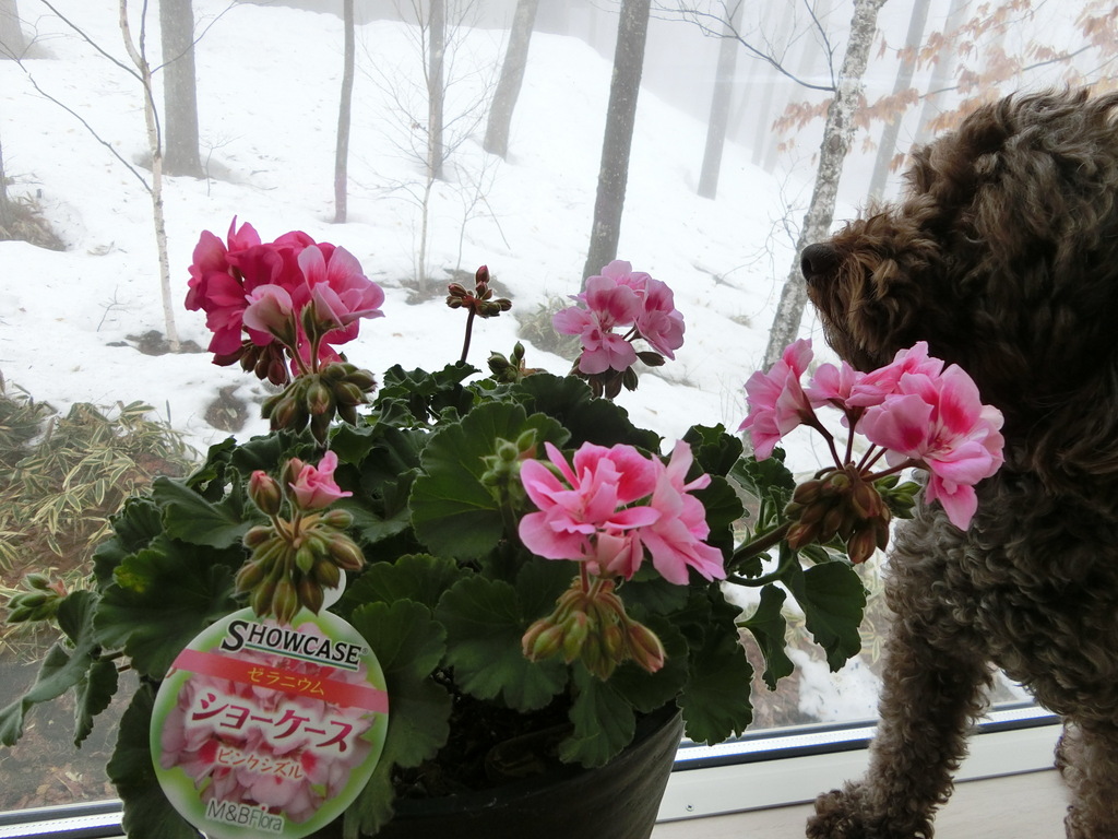 1日中 陽のさす窓辺でゼラニュームが気持よく咲いています