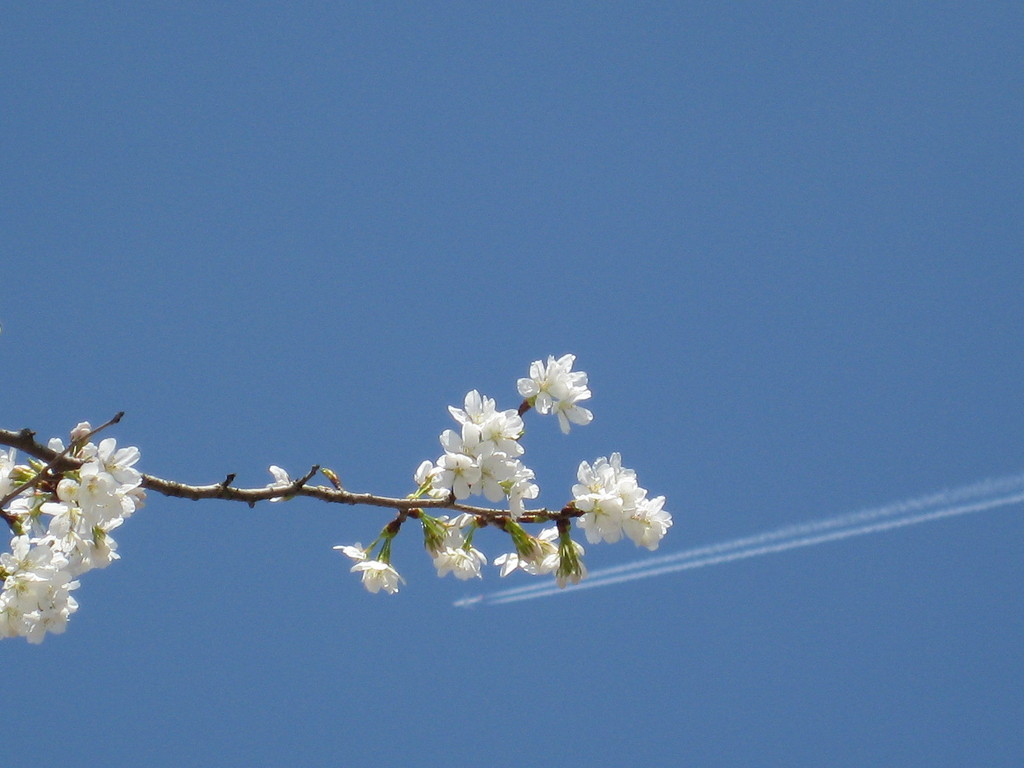 青い空に桜と飛行機雲がくっきりと映えていますね~~!どちらの山に登られたのでしょう?そして、飛行機の正体は~??教えてくださいませ~~!