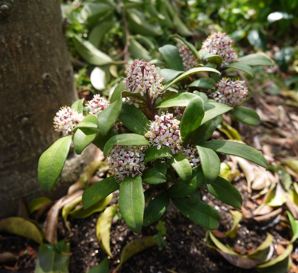 去年植えたスキミアの花が咲きました。