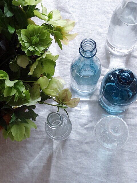 アンティークの瓶やプリンの空き瓶など色々な瓶を用意して