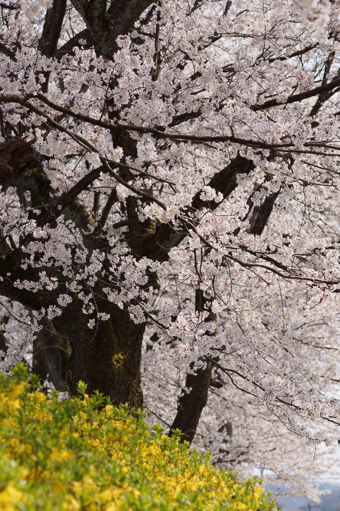 桜とレンギョウ。春いっぱいの散歩道です。
