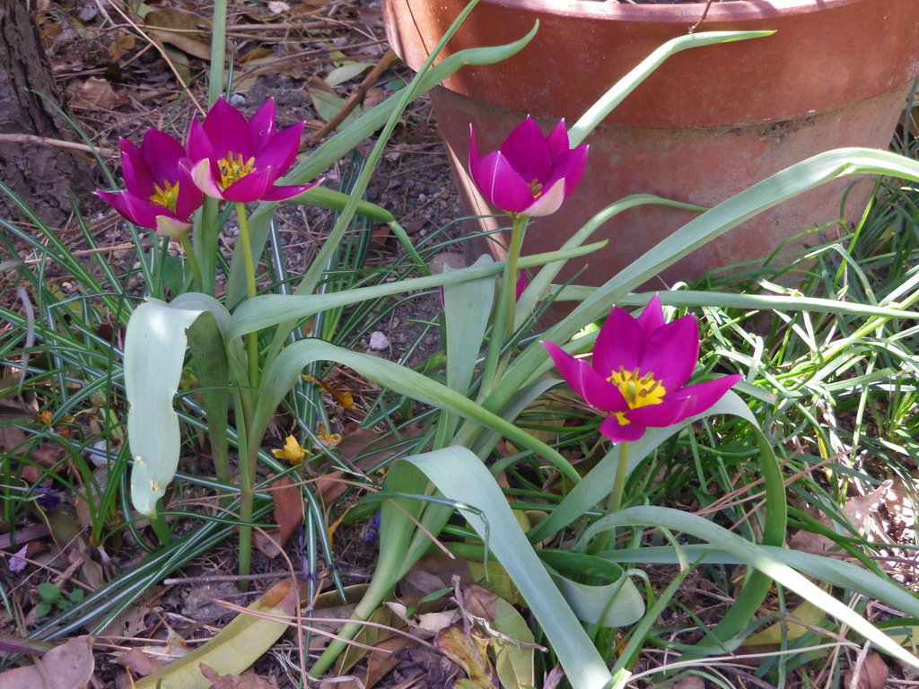 こんなすてきな変わった色合いのミニチューリップを、昨年の秋に目立たないところに植えて、すっかり忘れていました。