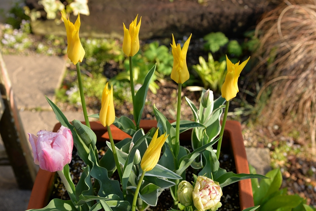 初めて 我が家やってきた チュリップ 朝日を待って 歌っました。