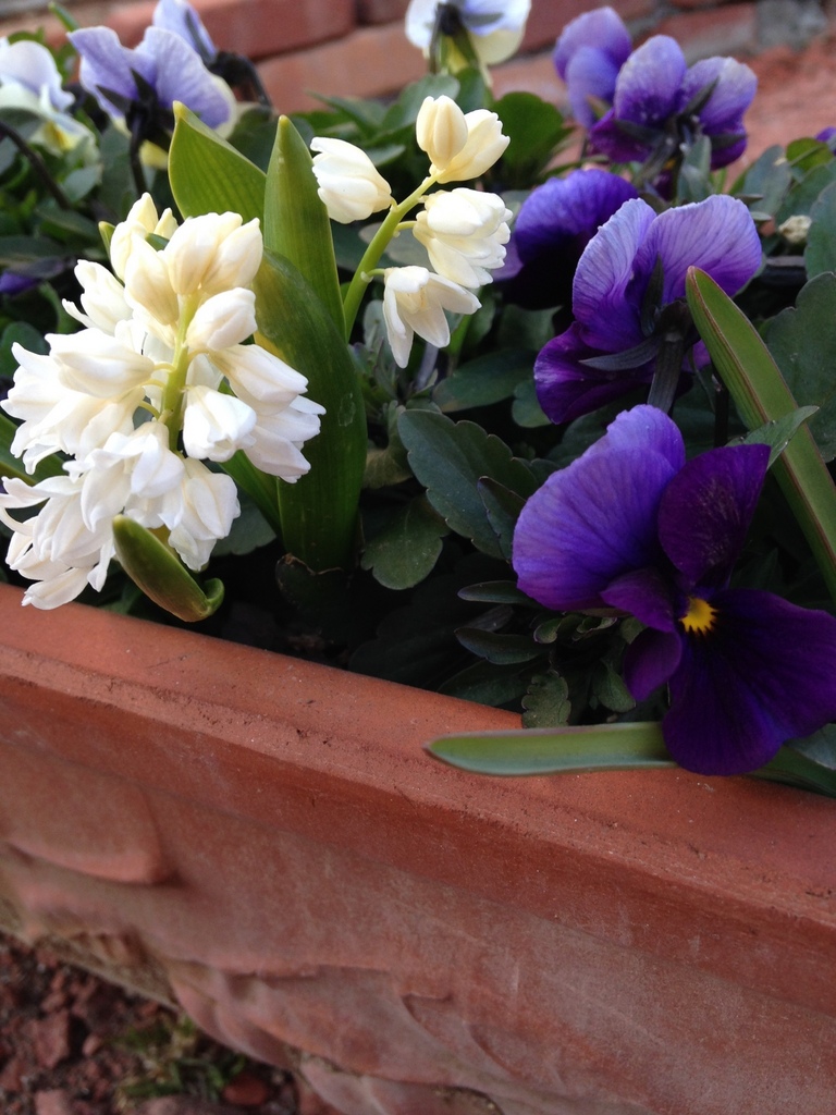 白いプシュキニアと濃い紫のビオラのコラボです。