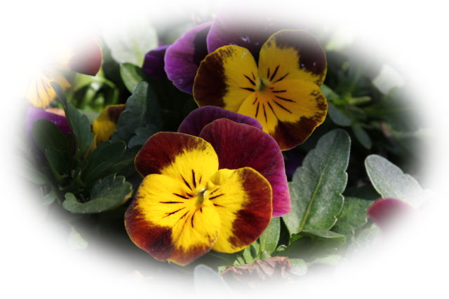 名前のように百以上のエンジ系ビオラがこんもり咲きました。