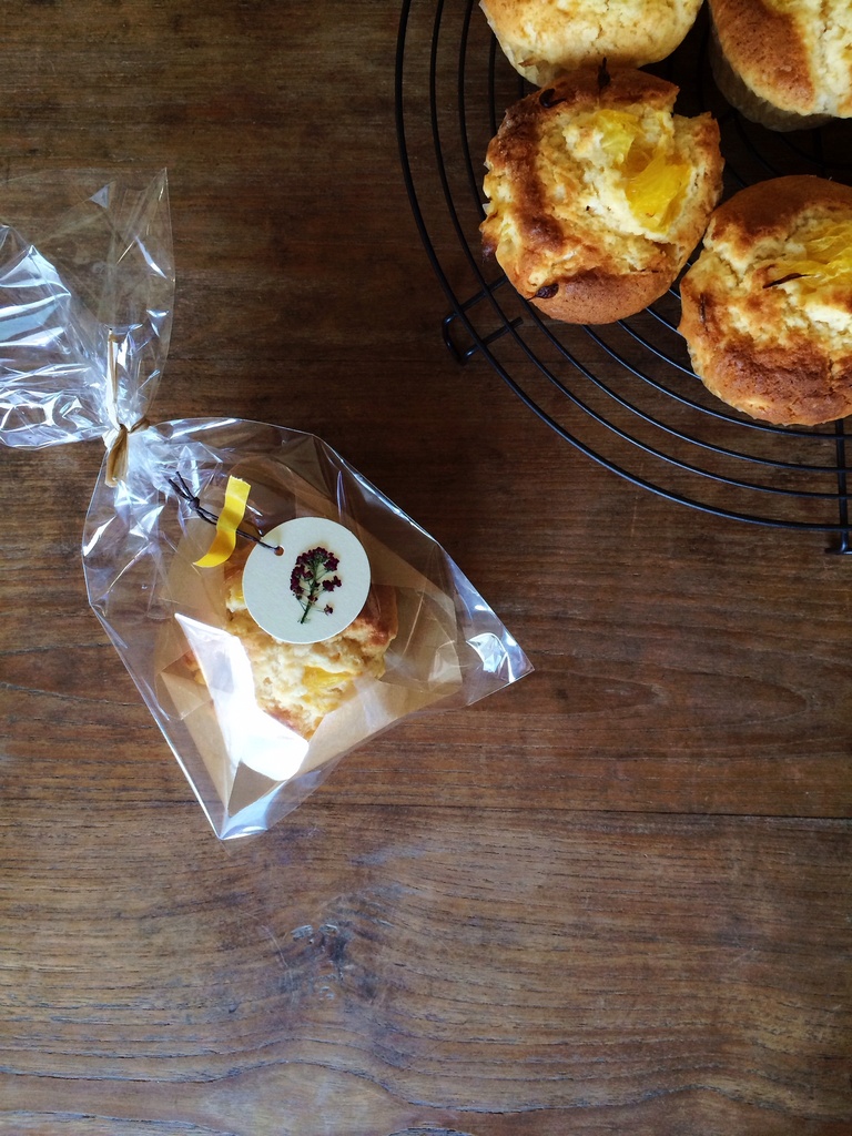 シロップ漬けを使ってマフィンを焼きました♪おばあちゃんにもおすそ分け。先日の押し花を添えました(*^_^*)mitsue's gardenさん、自己流なんでお手紙へは、糊で貼ったり、マスキングテープでぺたっと貼るだけです〜