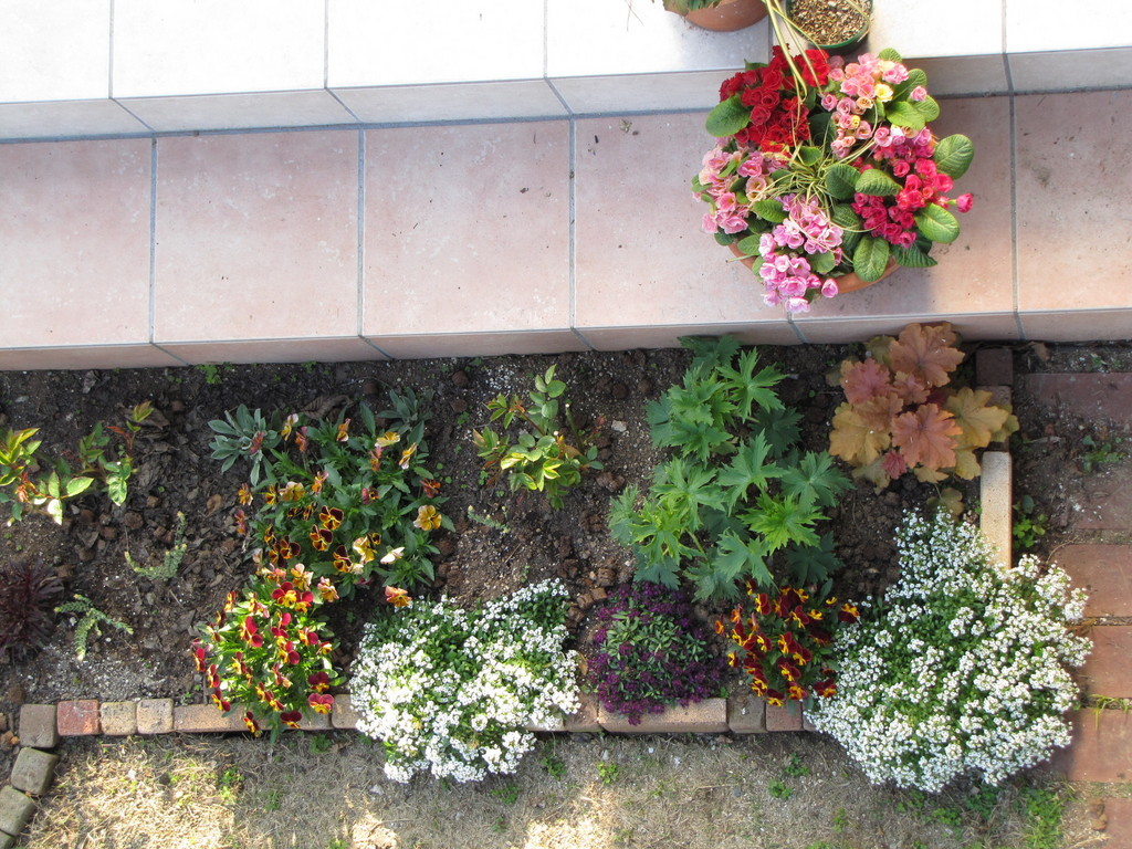 テラスのタイルの色がうちのとよく似ている!2段の階段もうちとおなじだ~!ってどこ見てるんだか・・・アリッサム元気でいいですね。お手入れの賜物ですね。