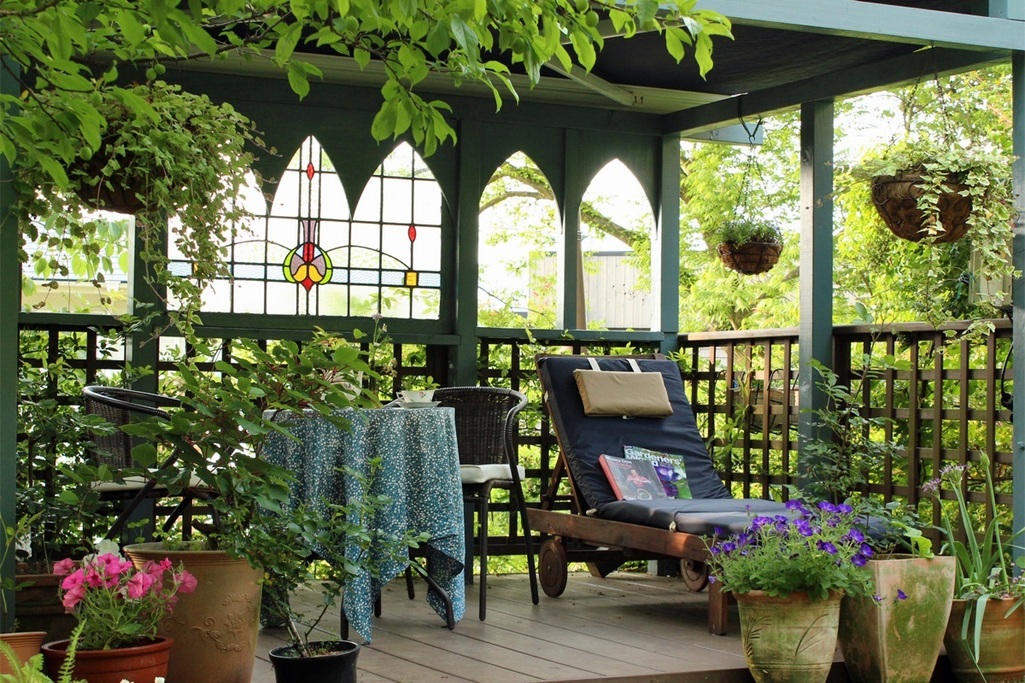 このガゼボ?パーゴラ?はご自分で作られたのですか?我家でも参考にさせていただきたいです。半戸外的なスペースの実用性はどうですか?異常気象で短くなる春と秋を考えると夏や冬の使い勝手が気になります。