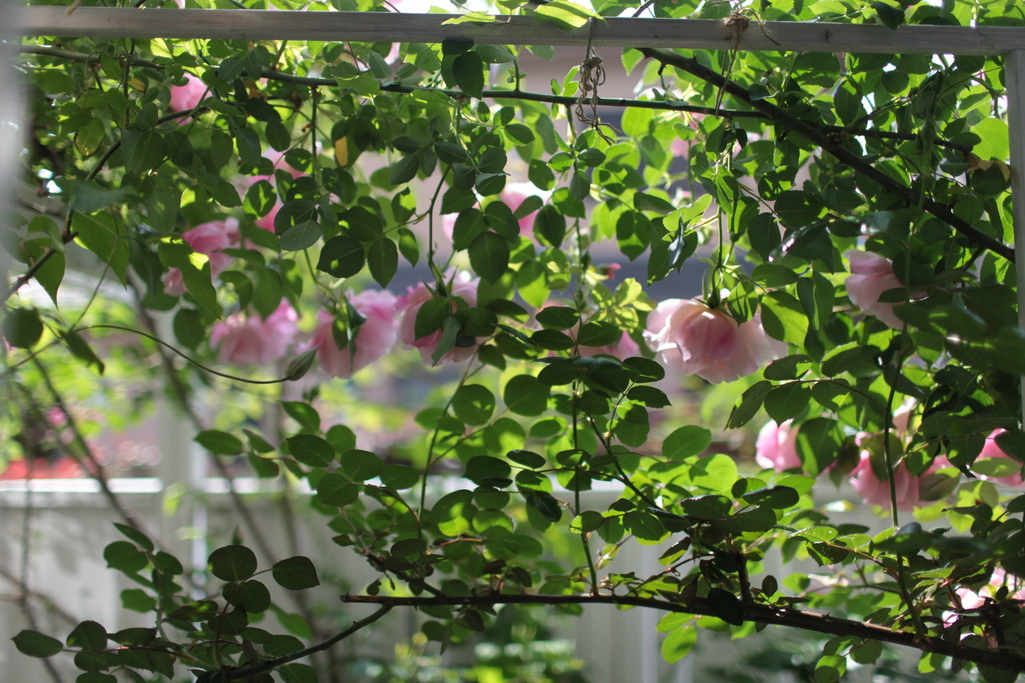 家の中から見える姿もいいですよね! 私は、それを・・「花のれん」って言ってます。 我が家の、「花のれん」は、ピエール・ドゥ・ロンサールです。もうすぐかな?