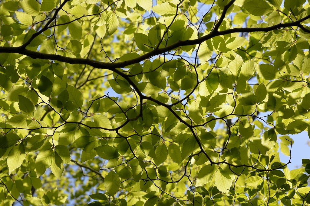 新緑の山登り、最近ごぶさたしています。当地でも高いところにはブナがみられます。