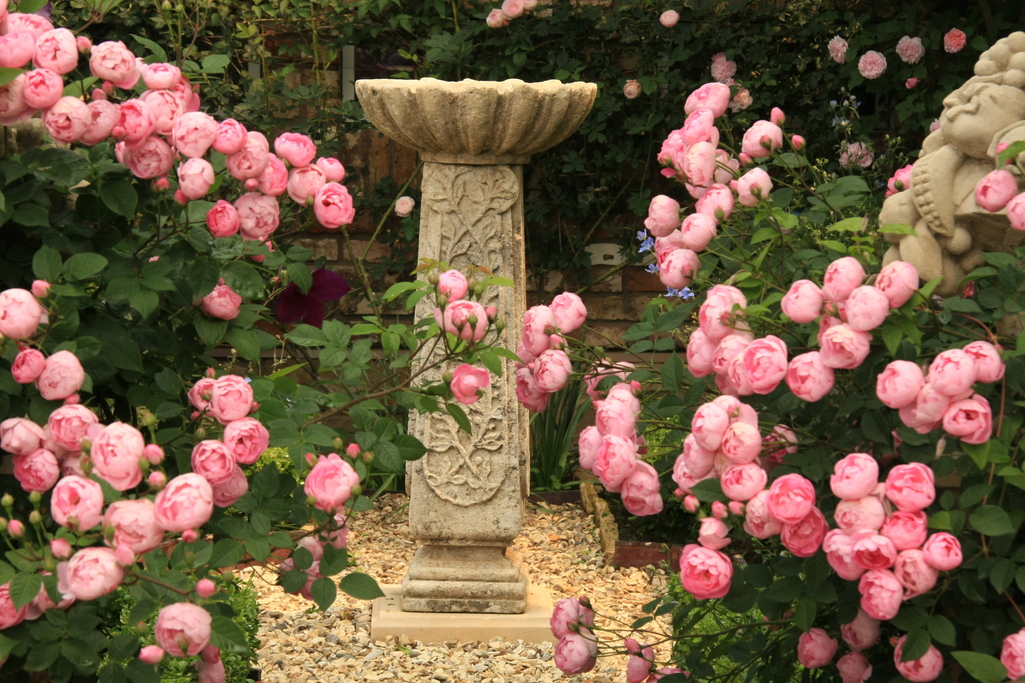 アップのしかたもビュ-ワで見て飽きがなく1枚1枚の写真良さが伝わります。イギリス風庭園の堅さをコロンとしたロ-ブリッタ-?の薔薇で和ませ、お互いの良さを倍増ですね。