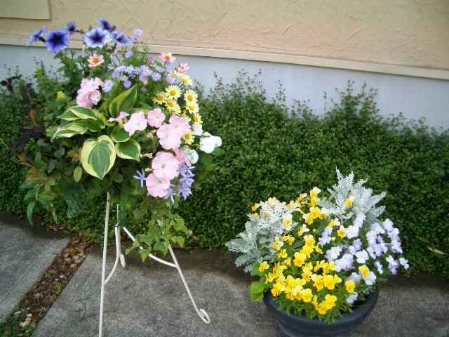 とっても優しい色の寄せ植えですね。こんな組み合わせも大好きです。