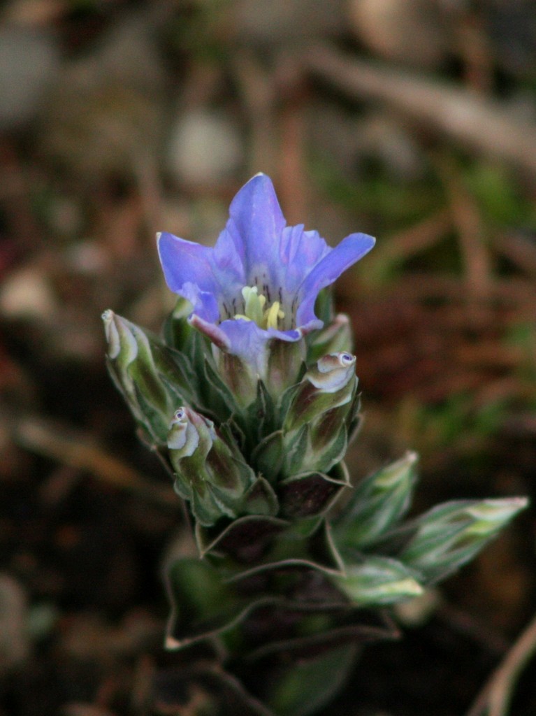 沢山の蕾を付けたフデリンドウ、一番上の蕾が開花しました。