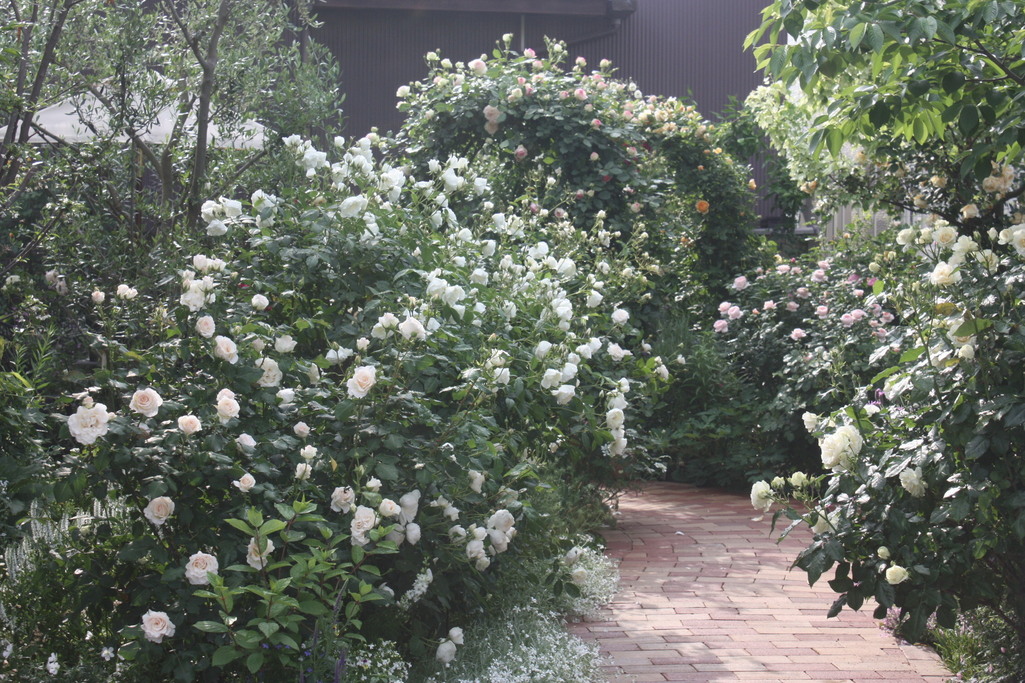 白いバラが沢山咲きそろって、すばらしいホワイトガーデンになっていますね。