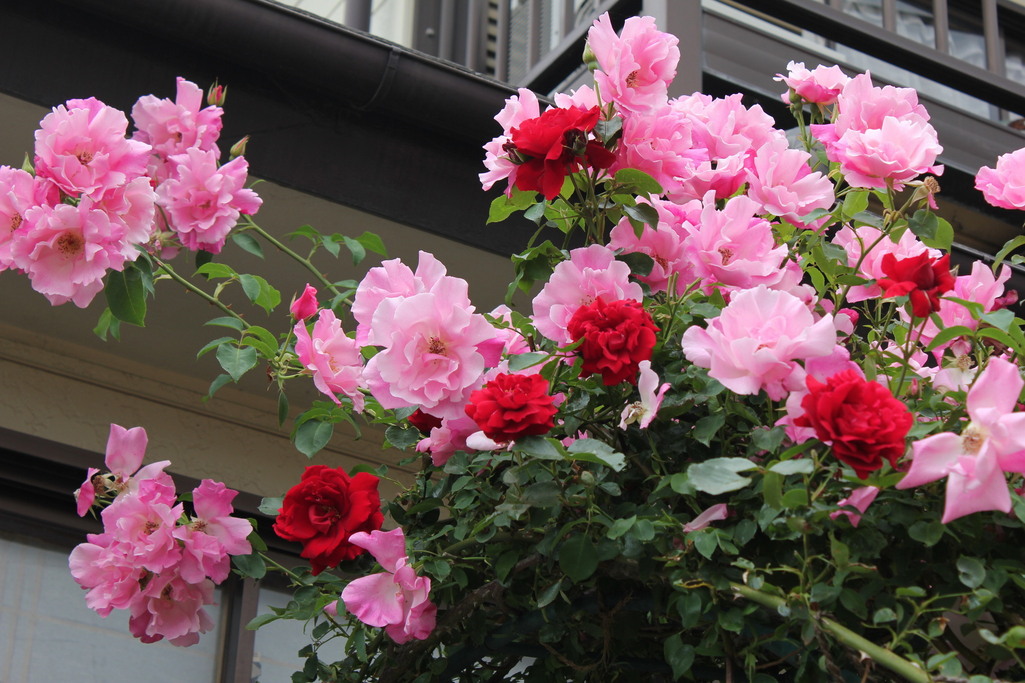 スパニッシュビューティーは一期咲きなのでダイナマイトの四季咲きとコラボしています。